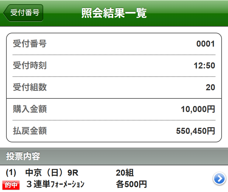 配当額は50万円超え(馬券画像載せたので見て下さい)