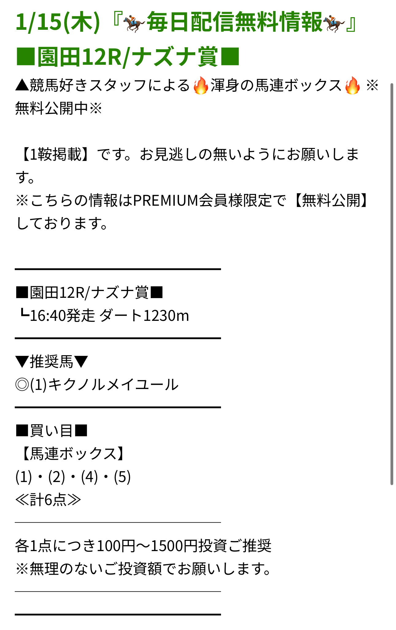 ■馬券代:1点3000円
